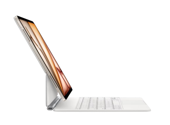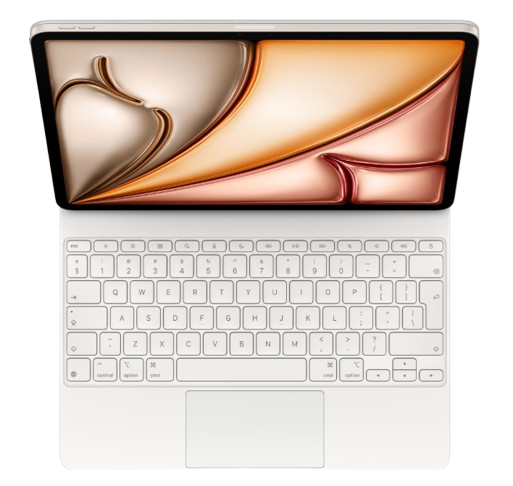 Tastatura Apple Magic Keyboard pentru iPad Air 13-inch (M3), oferă o experiență excelentă de tastare și un trackpad pentru navigare avansată pe iPadOS.